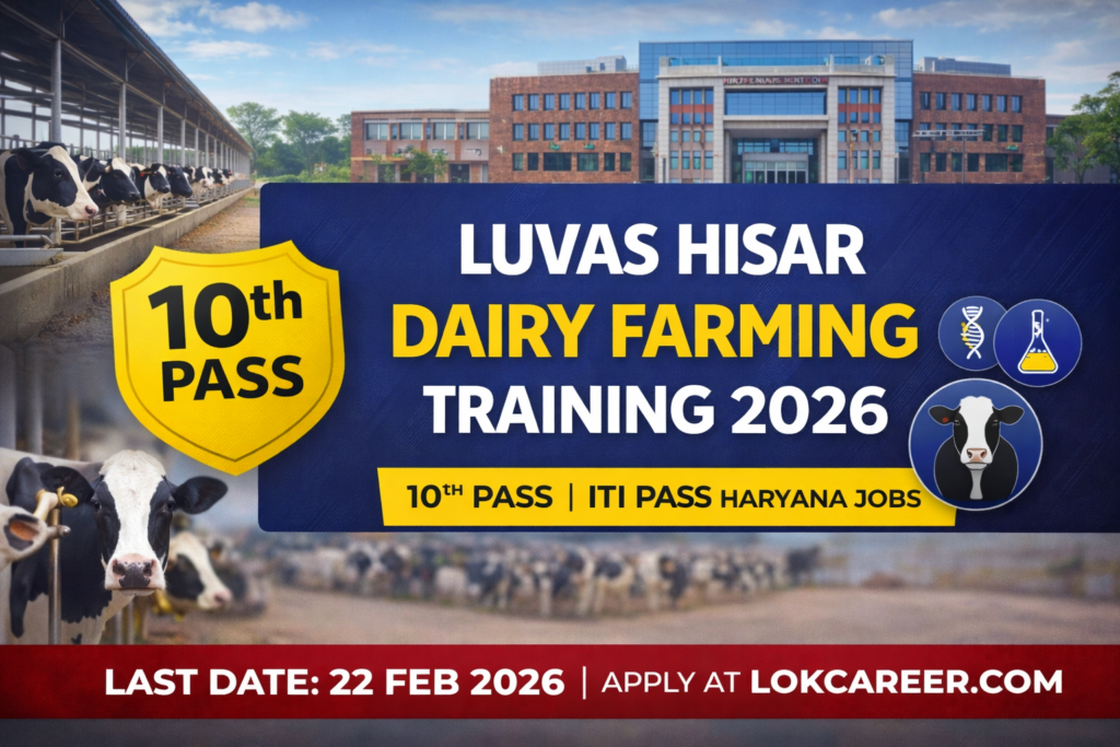 LUVAS Hisar Dairy Farming Training 2026 : हरियाणा के अनुसूचित जाति (SC) वर्ग के युवाओं के लिए लाला लाजपत राय पशु चिकित्सा एवं पशु विज्ञान विश्वविद्यालय (LUVAS), हिसार एक बेहतरीन मौका लेकर आया है। LUVAS द्वारा डेयरी फार्मिंग कौशल विकास प्रशिक्षण 2026 के लिए निशुल्क (Free) आवेदन मांगे गए हैं। यह ट्रेनिंग उन युवाओं के लिए है जो पशुपालन के क्षेत्र में अपना स्वरोजगार (Self-Employment) शुरू करना चाहते हैं।